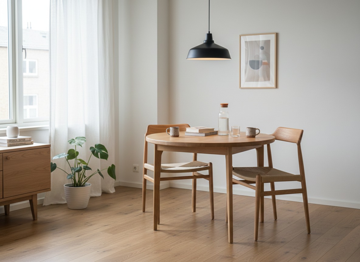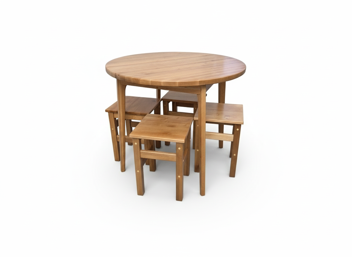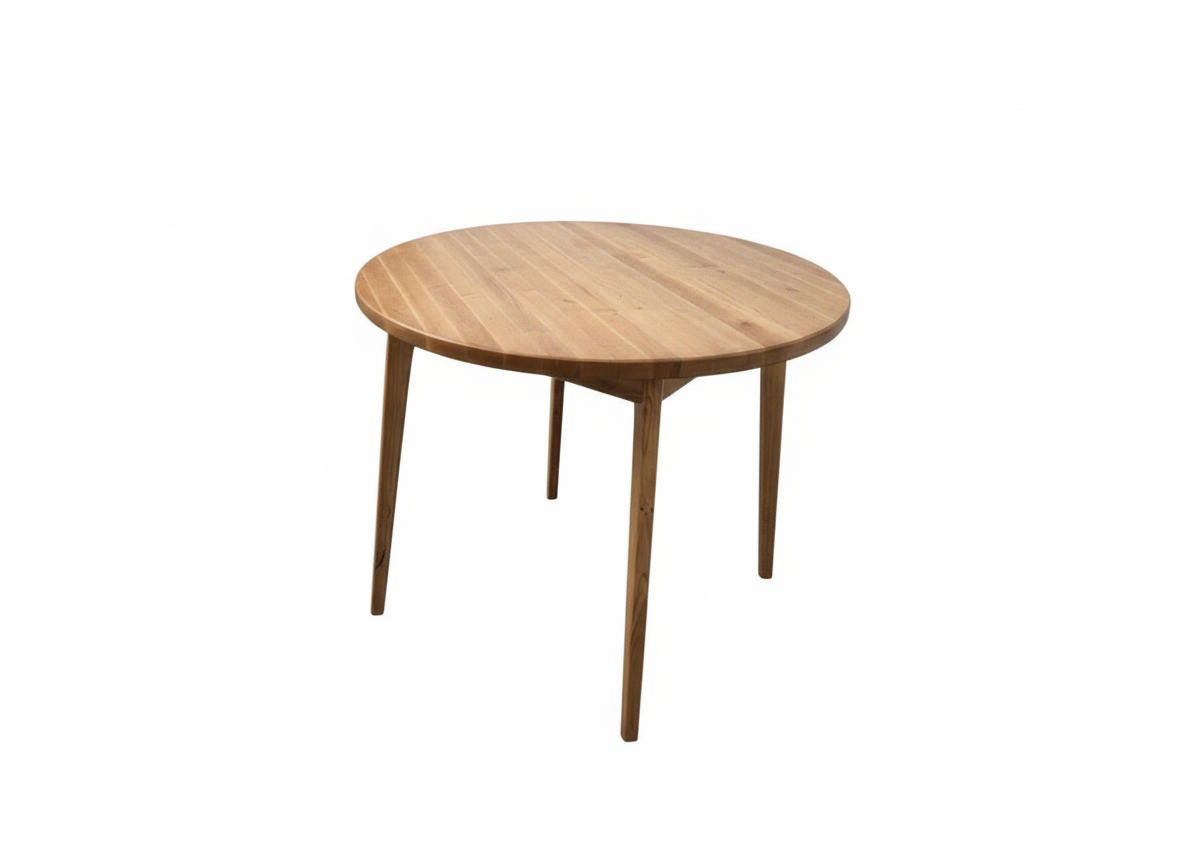 Sērijveidā šis galds tiek izgatavots no melnalkšņa masīvkoka un ir dabīgajā tonī lakots. Galda kājas ir nedaudz slīpas kas uz apakšpusi sašaurinās. Galda virsma ir no 3cm bieza masīvkoka un ir 90 cm diametrā.