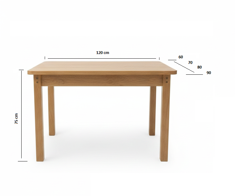 Sērijveidā galdi tiek izgatavoti no melnalkšņa masīvkoka un ir dabīgā tonī lakoti. Galda virsma izgatavota no 3 cm biezas masīvkoka blates. Galda stūrus var izvēlēties vai kantainus, vai noapaļotus. Pamata cenām atbilst standarta tonis!
